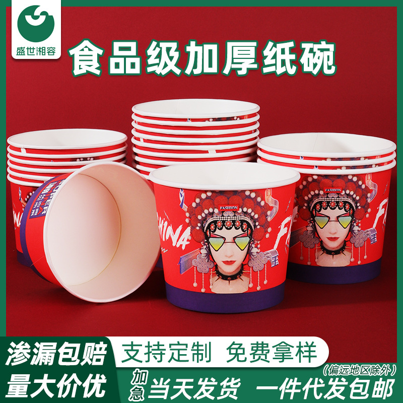 国潮一次性纸碗定制纸质餐盒加厚圆形带盖商用整箱批发外卖打包碗