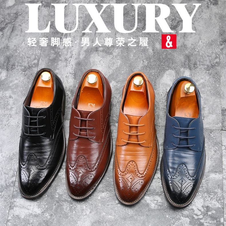 布洛克男皮鞋英伦大码潮鞋商务休闲皮鞋男式跨境38-48码2025新款